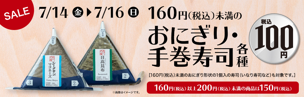 ・税込160円未満のおにぎり・手巻寿司各種:税込100円